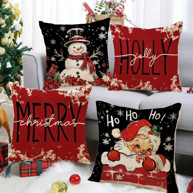 N'hésitez pas à mélanger les motifs ! Le 'Merry Christmas' rouge se marie parfaitement avec le joyeux 'Ho Ho Ho!' du Père Noël. Créez une composition unique qui raconte votre histoire de Noël, ajoutant cette touche personnelle et authentique que vous adorez. Ces housses s'adaptent à vos coussins existants, rendant la décoration un jeu d'enfant. Laissez votre créativité parler.
