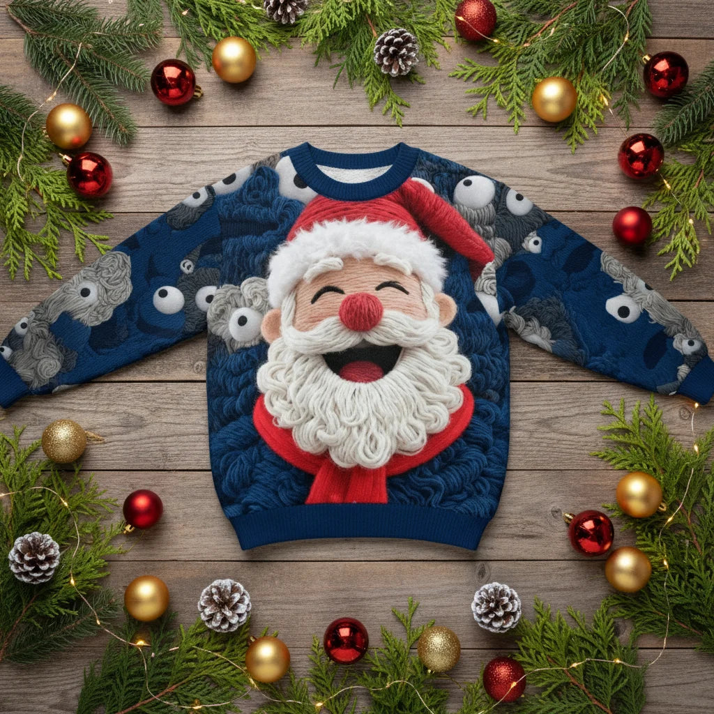 Avec son Père Noël jovial imprimé en 3D, ce pull transforme n'importe quelle tenue en célébration. Préparez-vous pour les photos de famille les plus mémorables et les sourires garantis !
